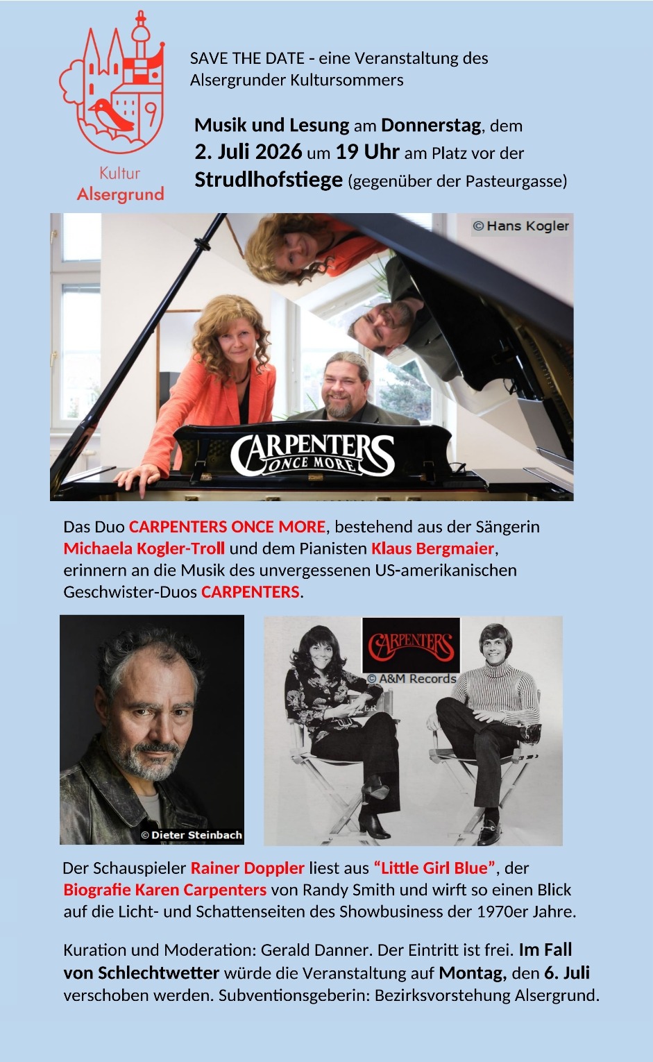 „Carpenters Once More“ bestehen aus der Sängerin Michaela Kogler-Troll sowie dem Pianisten Klaus Bergmaier. Beide waren und sind musikalisch in verschiedensten Richtungen unterwegs, durch Zufall fanden sie als glühende Carpenters-Fans zusammen und gründeten ein Carpenters-Tribute-Duo.